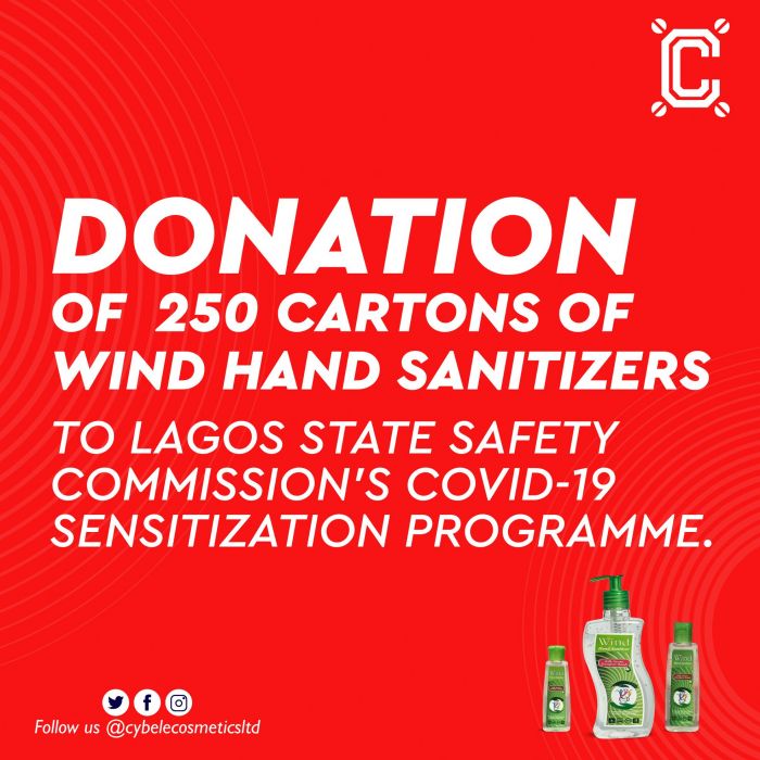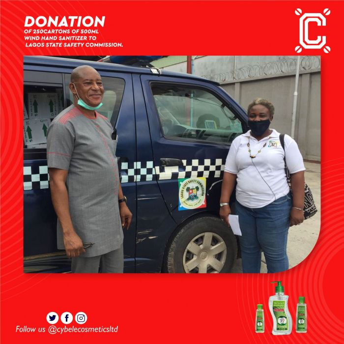 250 cartons of 500ml Wind Hand Sanitizers to the Lagos State Safety Commission.