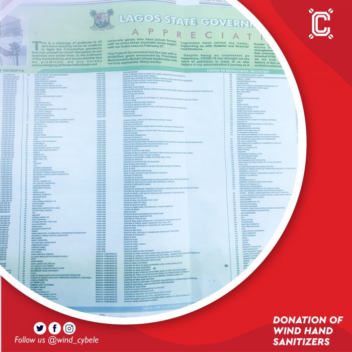 1000 CARTONS OF WIND HAND SANITIZER TO LAGOS STATE TASK FORCE