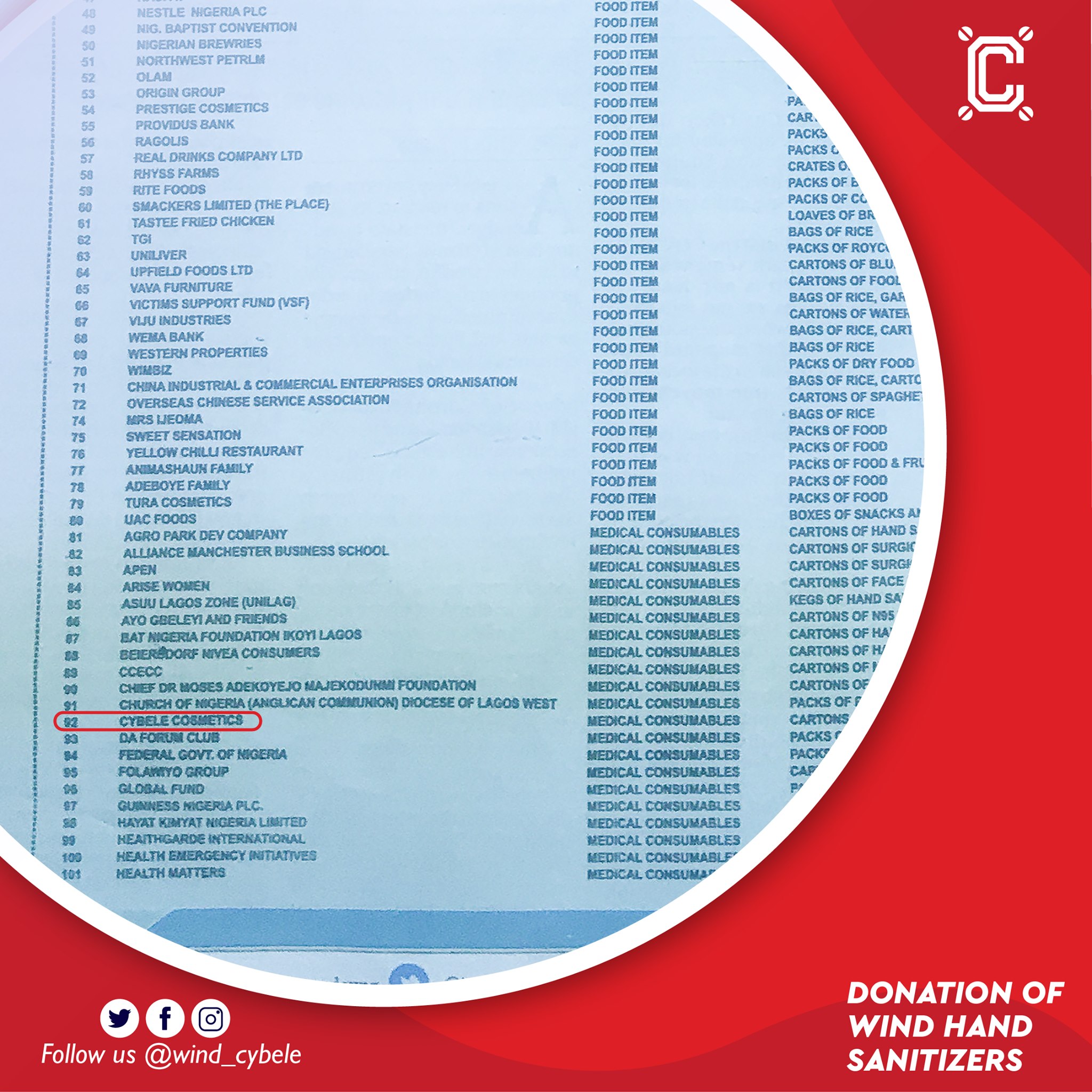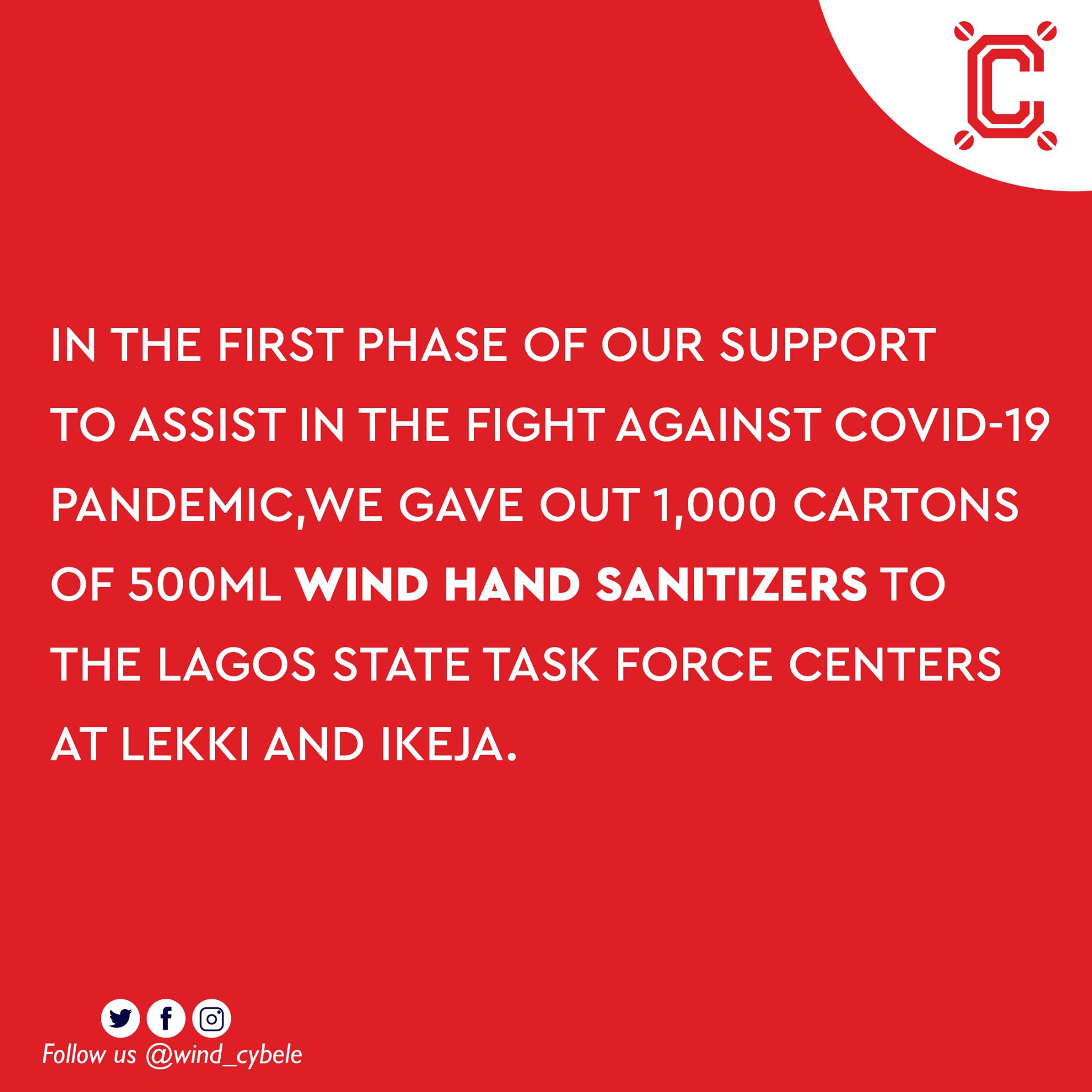 We are glad to be part of the soldiers on the war front to fight the Coronavirus pandemic with the distribution of 1000 cartons of 500ml Wind Hand Sanitizer.